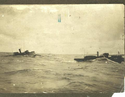 Here is a photo from Mr. VerDuin showing the Urger (ex Dornbos) towing another tug to safety on a lumpy day on Lake Michigan. Now it's our turn to see her to safe harbor for anoth